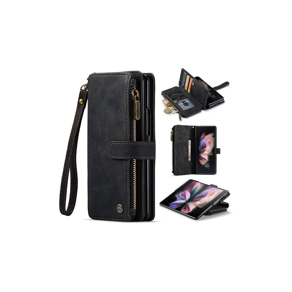 Compatible with Samsung Galaxy Z Fold 3 CASEME Retro Leather Wallet Case Black Black