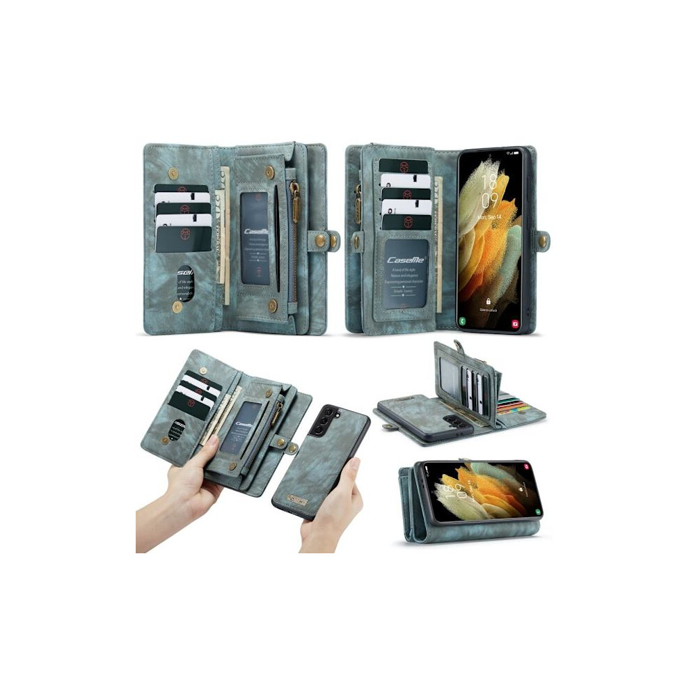 CASEME compatible with Samsung Galaxy S21+ (Plus) Retro Leather Wallet Case Blue Blue