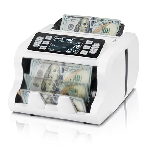 MUNBYN Money Counter Machine Mixed Denomination, VUV/MG/IR/MT Banknote Counter, Cash Counting Machine, GBP, EUR, USD Counterfeit Money Detector, IMC09, White