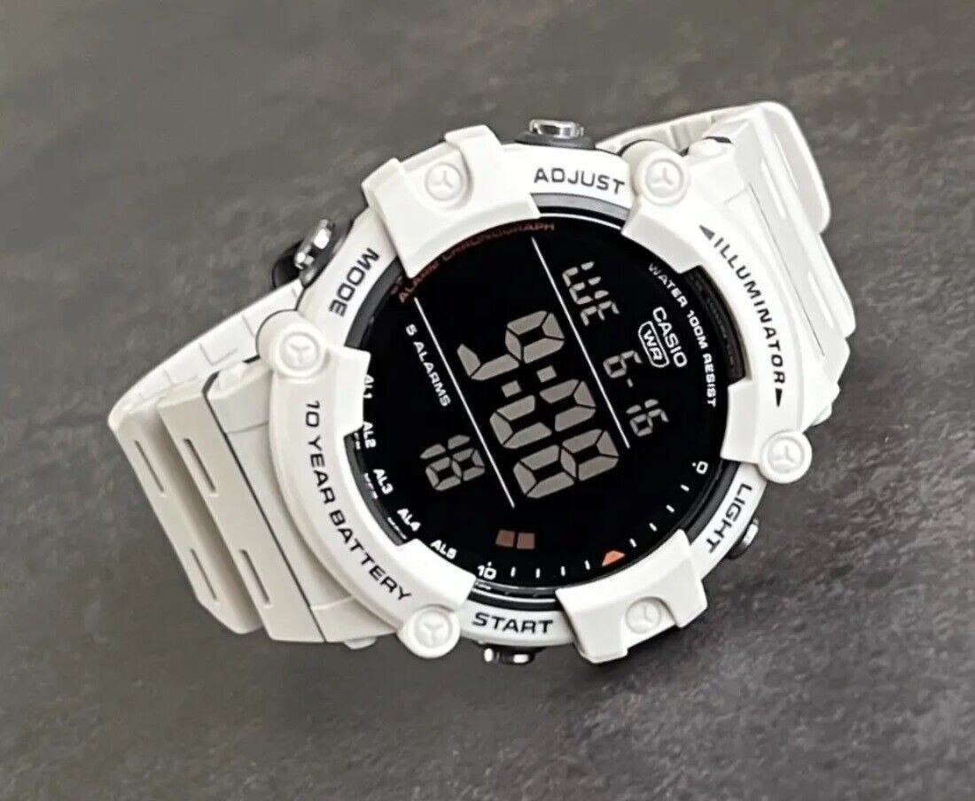 Casio Illuminator AE1500WH Series | 10-Year Battery | LED Backlight | 5-Alarms | 1/100 Sec Stopwatch | Men's Digital Watch, White, Standard, Chronograph,Digital
