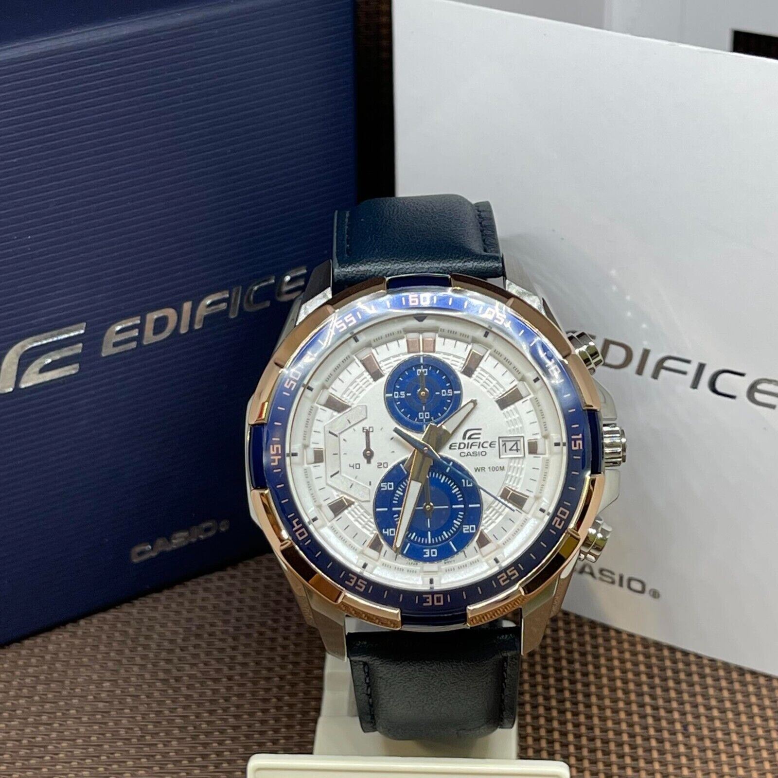 Casio Edifice EFR-539L-7C Blue Leather Chronograph Rose Gold Design Men's Watch