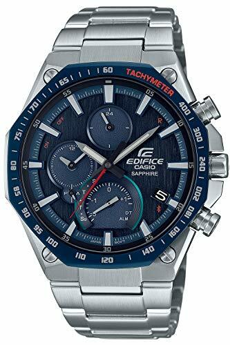 Casio Edifice Blue Analog Dial Silver Stainless Steel Band Men's Watch, Silver, Classic