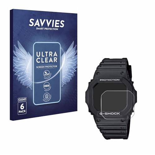 Savvies 6 Pack Screen Protector compatible with Casio G-Shock GW-M5610-1ER Protection Film Clear