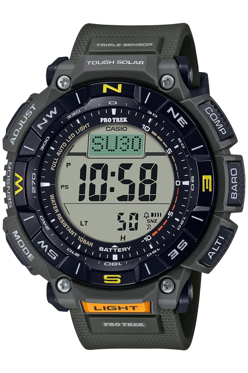 Casio PRG340 Series | Pro Trek | 100 Meter Water Resistance | Compass | Alt/Baro-Thermo | Tough Solar Power | 1-100 SEC Stopwatch | Countdown Timer | World Time, Green, PRG-340-3CR