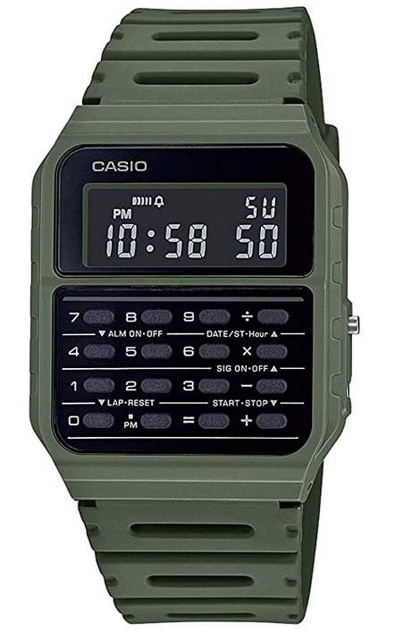 Casio Mens Digital Calculator Retro Dial with Green Plastic Strap Watch