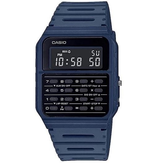 Casio Mens Digital Calculator Retro Dial with Plastic Blue Strap Watch