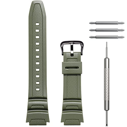 WRISTARMOR resin watch band Compatible with Casio W-218H AE-1100w SGW-300H AE-1000w AE-1200 F-108 men's waterproof sport Watch strap (Armygreen Black buckle)