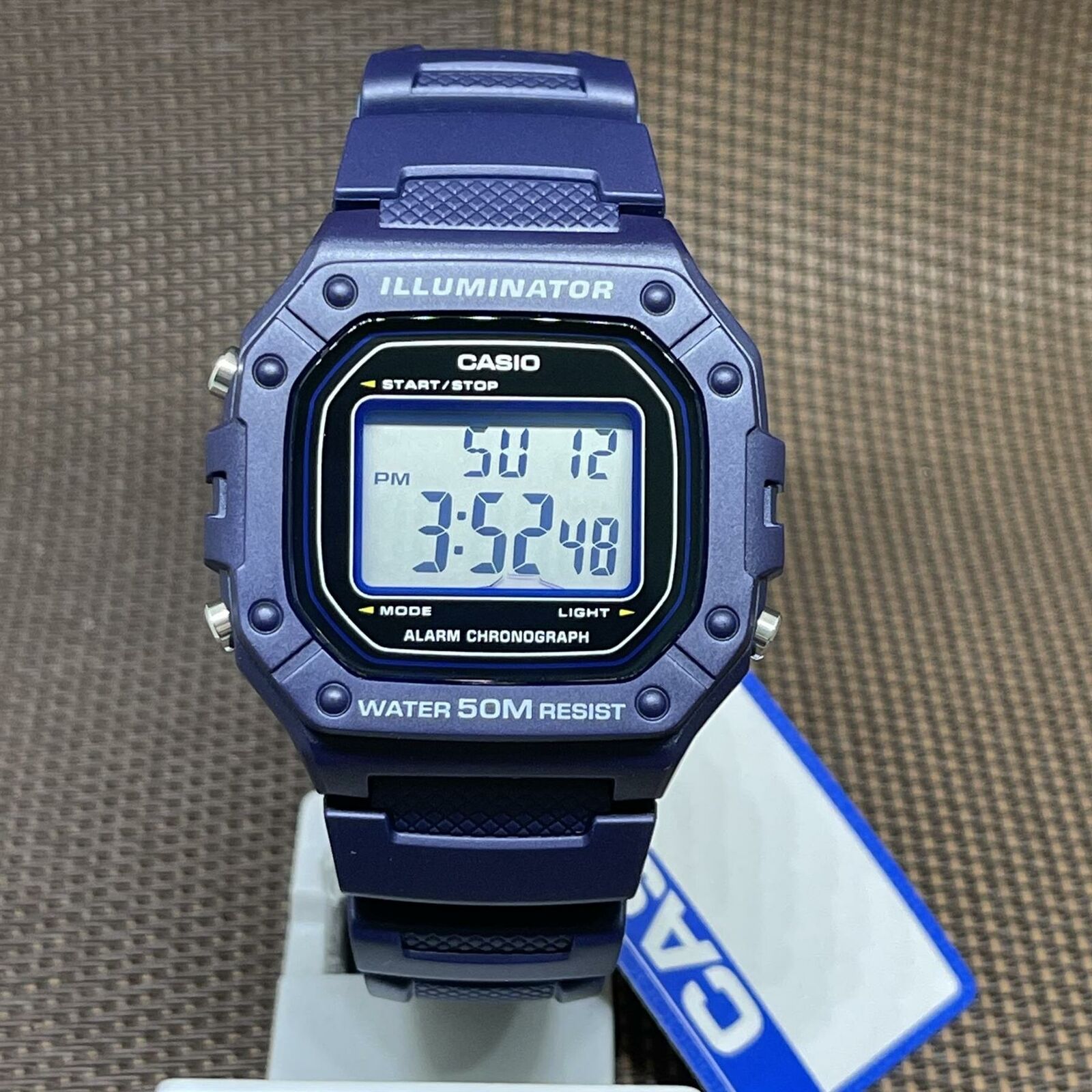 Casio W-218H-4BV Digital Alarm Calendar Day/Date Stopwatch 50M Mens Watch