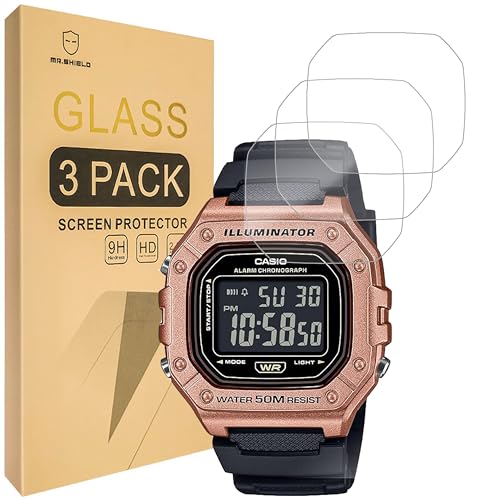 Mr.Shield Screen Protector compatible with Casio W-218H / W218H/ W-218HM-5BV Series [Tempered Glass] [3-PACK] [Japan Glass with 9H Hardness]
