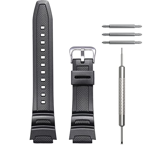 WRISTARMOR resin watch band Compatible withCasio AE-1100w SGW-300H AE-1000w AE-1200 W-218H men's waterproof sport Watch strap (Black silver buckle)