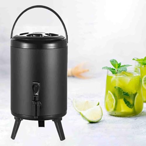Stainless Steel Insulated Beverage Dispenser, Commercial Large-Capacity Coffee Urn Hot Water Barrel and Milk Tea Insulation Barrel, Multipurpose in One Bucket (Color : Black, Size : 6L) To pursue