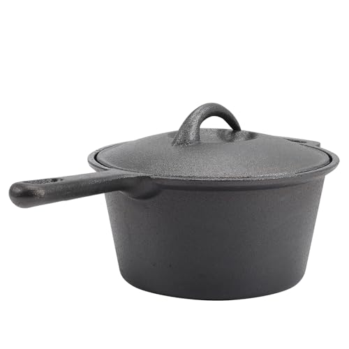Warmiehomy Cast Iron Dutch Oven,2L Non-Stick Pre-Seasoned Saucepan Dutch Oven Pot with Lid and Long Handle,small Casserole Dish Cookware Pot for Camping Cooking Baking Indoor Outdoor