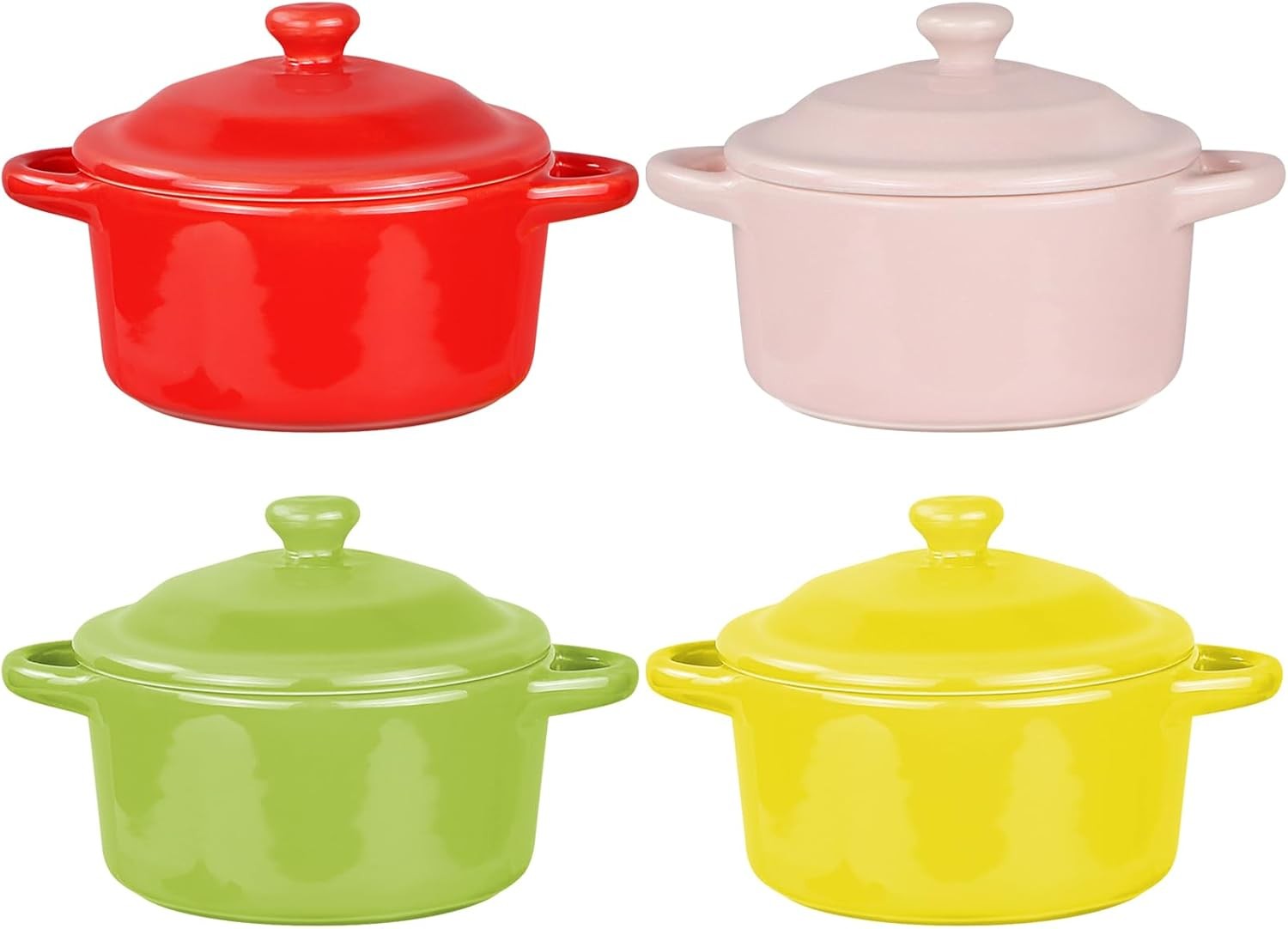 Set of 4 Small Casserole Dish with Lid,7 oz Ramekins Serving Dishes with Lids,C