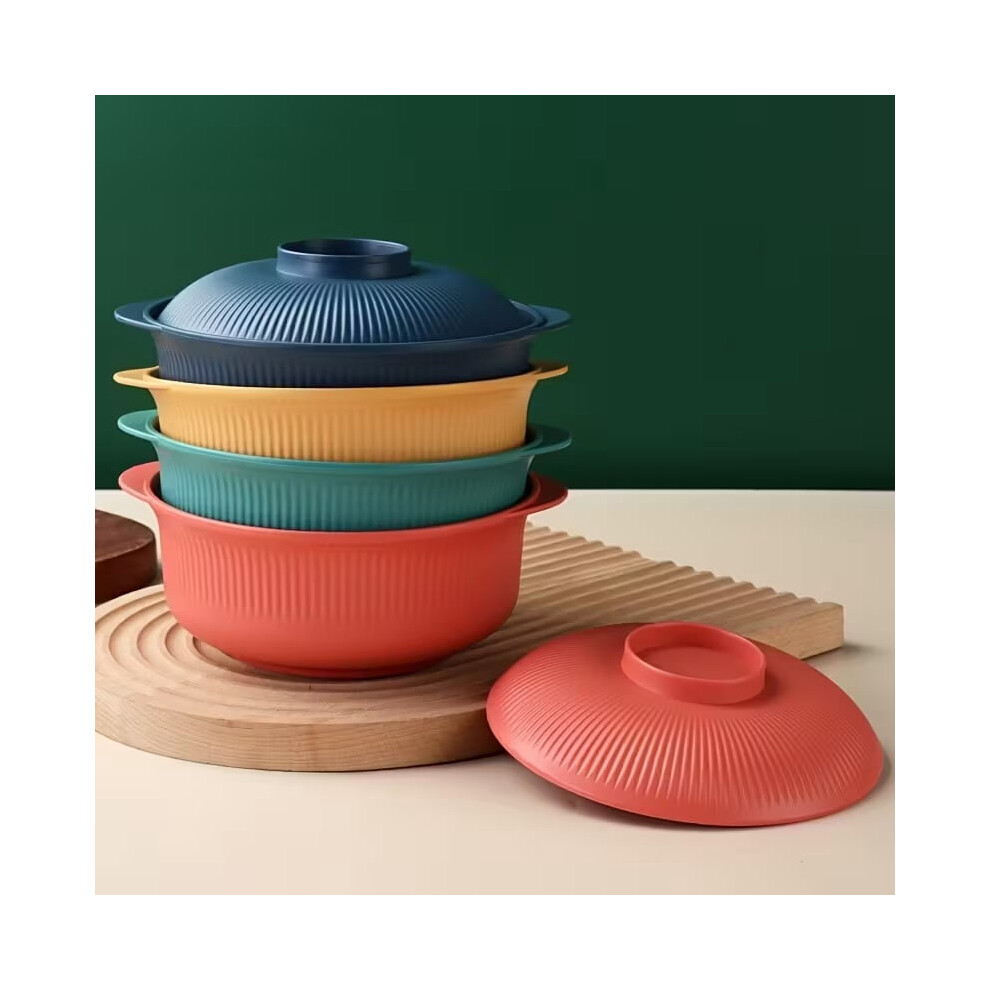 Set Of 4 Small Round Reactive Glaze Casserole Dishes Stoneware Oven Pots Lids