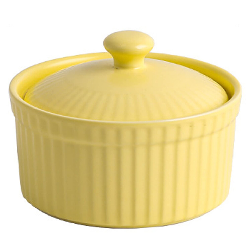 Baking Porcelain Ramekins with Lids for Custard, Dips, Souffle, Mini Casserole Dishes Yellow