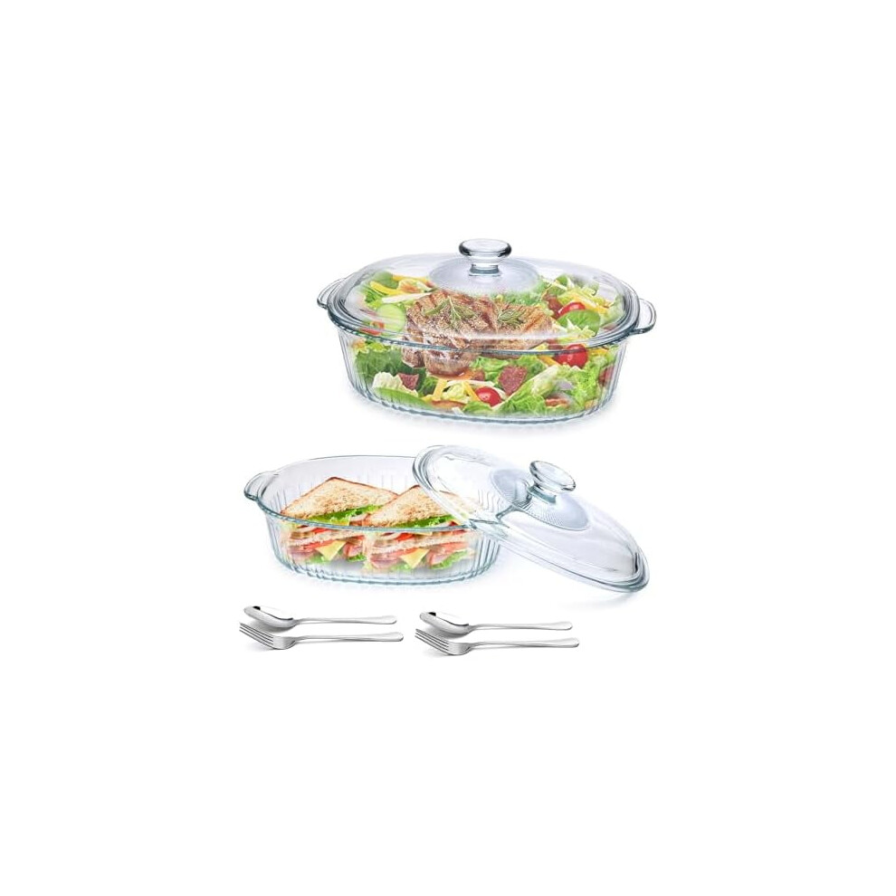 2-Pack Glass Casserole Dishes with Lids (1.9 Qt & 3 Qt), Oven-Safe Ribbed Oval Bakeware Set for Lasagna, Casseroles, Leftovers â Compatible with