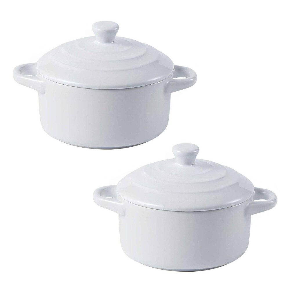 Mini Ceramic Casserole Pots Set Of 2 With Lids, Oven-Safe Small Soup Pots For Soups And Stews, Side Dishes, White