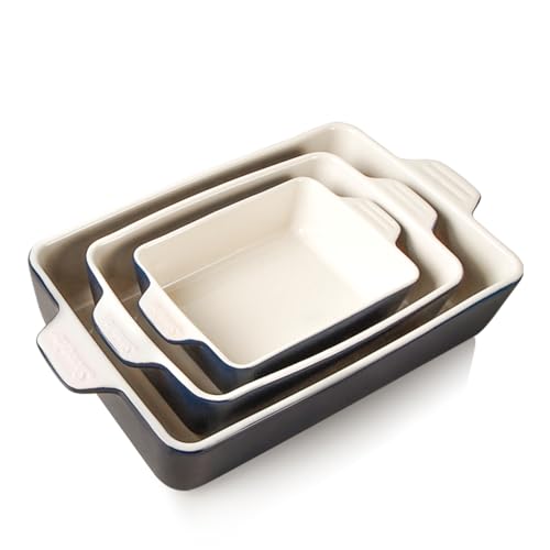 Ceramic Bakeware Set of 4, Casserole Dishes for Oven, Rectangular Baking Dish wi