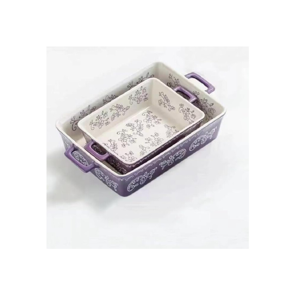 2 set ceramic deep square casserole dishes for baking oven use 11.4+8.5 inch