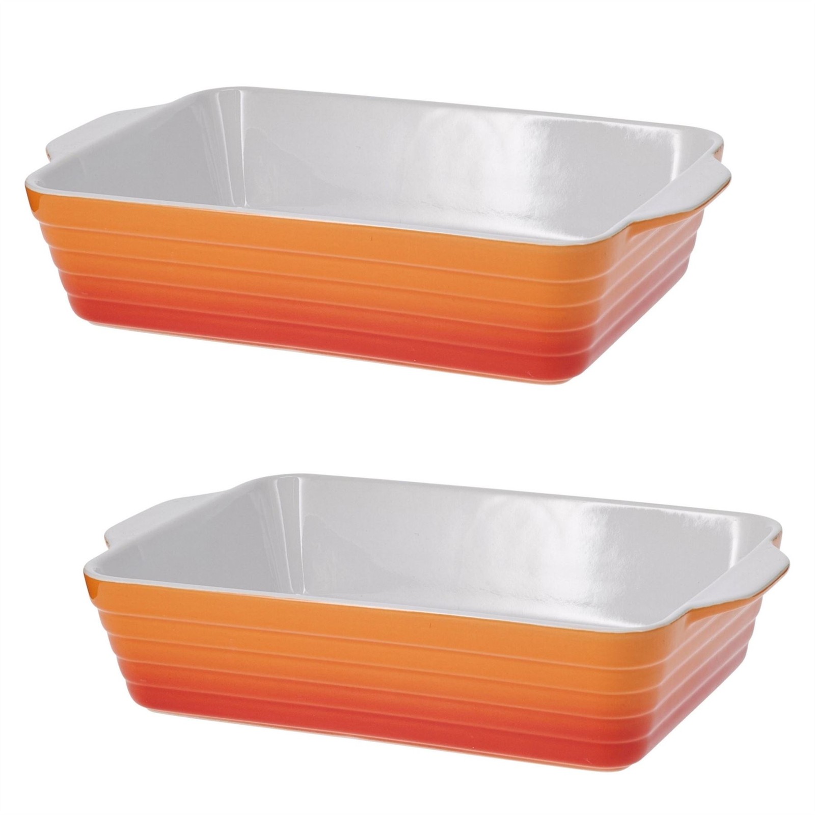 Set of 2 Medium Orange Stoneware Baking Dishes 24x18x6.5cm Casserole Dishes 1.2L