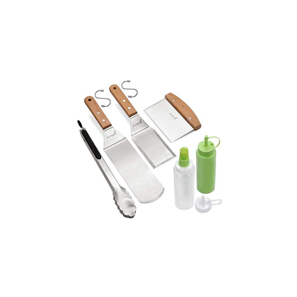 Metal Spatula Set Stainless Steel and Scraper - Professional Chef Griddle Spatulas Set of 6 - Heavy Duty Accessories Great for Cast Iron BBQ Flat