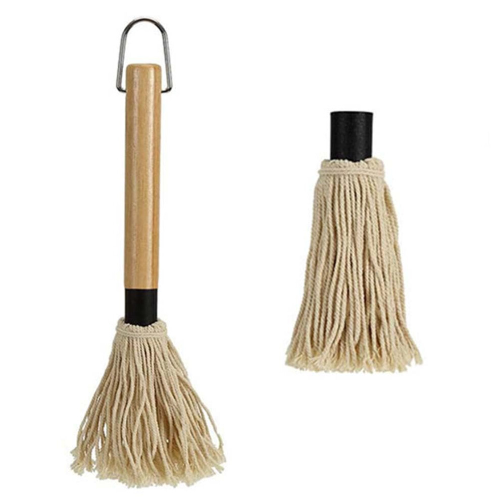 1 x grill brush, grill mop, cast iron, sauce pot and grill mop brush set with 1 additional replacement heads for cooking, frying, grilling