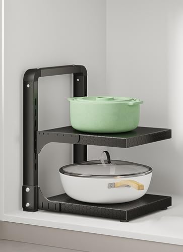 Pots and Pans Rack - Heavy-Duty Carbon Steel Kitchen Organizer for Cupboards and Counters, Ideal for Cast-Iron Cookware Storage