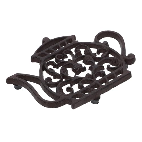 Garneck Teapot Shaped Cast Iron Trivet Vintage Heat Resistant Pad for Kitchen Counter Dining Table Non Slip Design Easy to Clean for Hot Pots and Pans