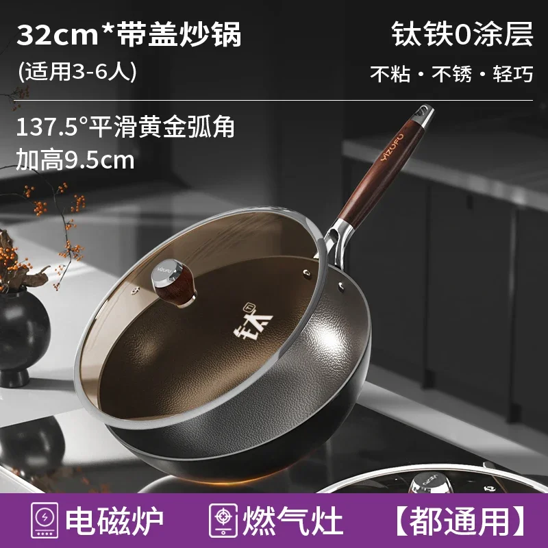 Portable Pots and Pans Cast Iron Cookware Ferrotitanium Wok Pan Cooking Pot Non