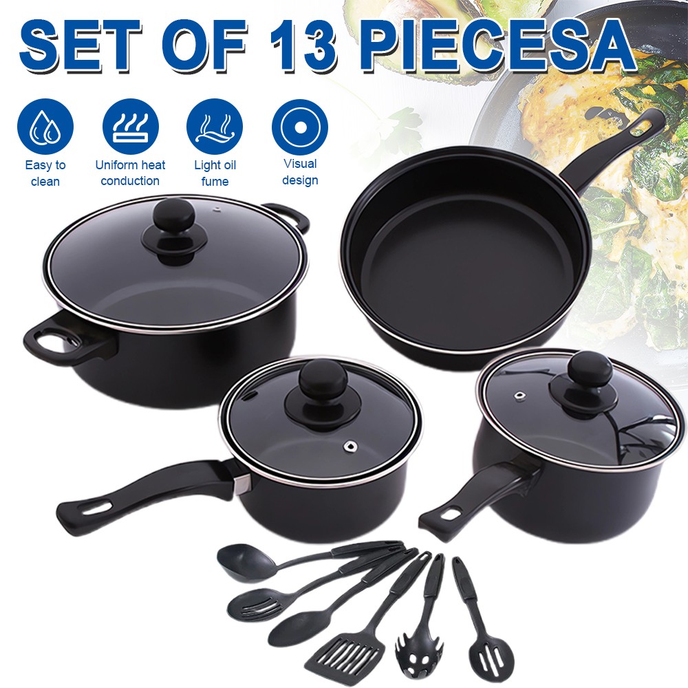 Non Stick 13PCS Cast Iron Pan Set Milk Sauce & Frying Pans Pots with Lids O8M