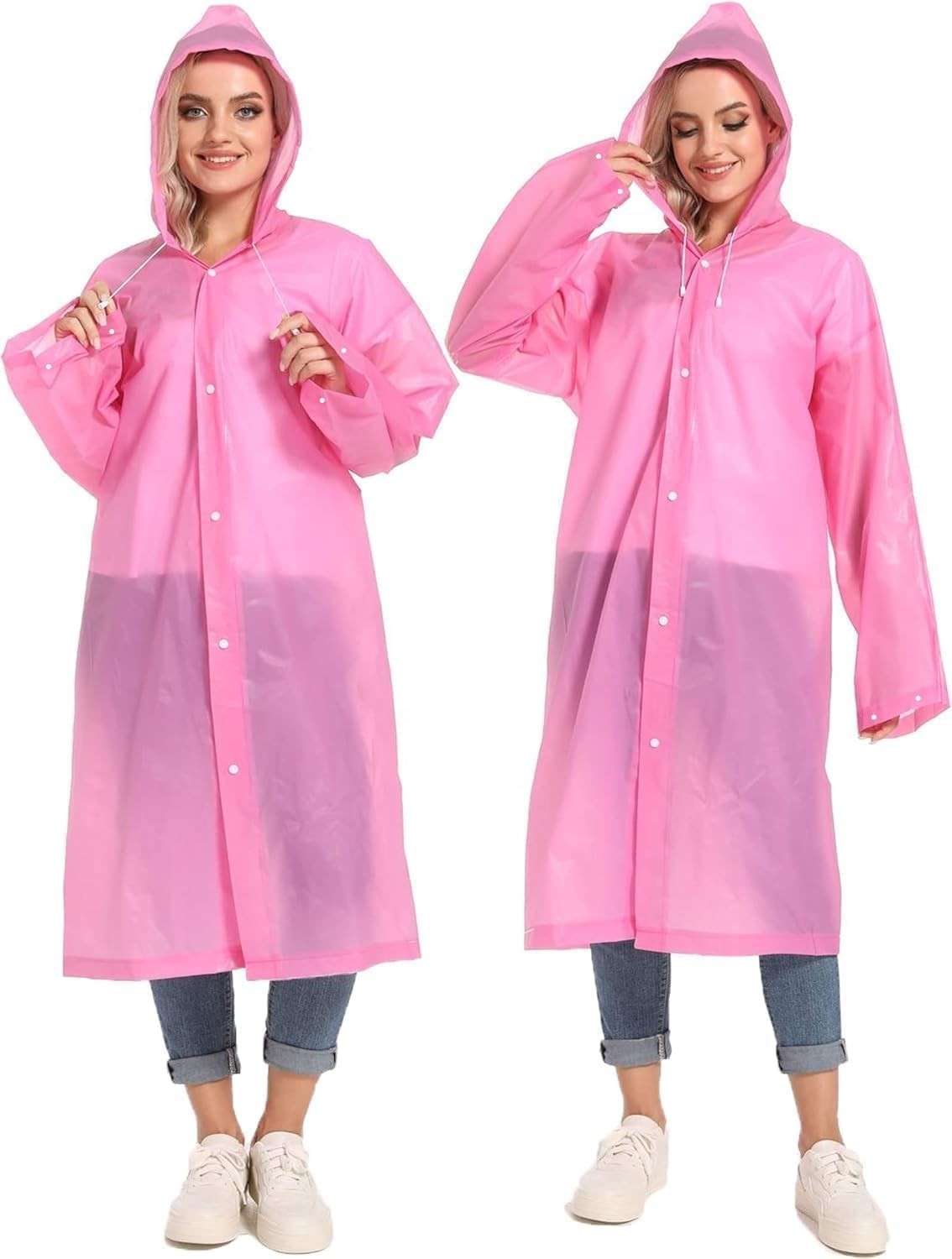 Chyaya 2 Pack Rain Poncho Waterproof Raincoat for Men Women Adults,Lightweight Thicken Emergency Rain Jacket Hooded for Camping Hiking Travelling,Outdoor Activities - Pink