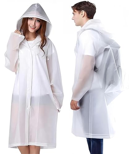Cosowe Rain Poncho Raincoats for Adults, 2 Pack Reusable Emergency Rain Coat Jacket with Hood, Rain Cover Poncho for Men Women, White