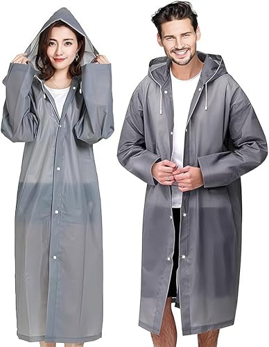 JITIFAZH 2 Pack Reusable Raincoat Rain Poncho with Hoods and Sleeves, Rain Jacket for men and women, Waterproof for Emergency, Hiking, Camping, Disney, Family festival, Outdoor(Gray+Gray)
