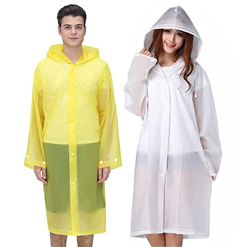 Cosowe Rain Ponchos for Adults, Reusable Raincoats for Women and Men, Emergency Rain Jacket with Hood for Disney, Camping, Outdoor Hiking (1 White + 1 Yellow)