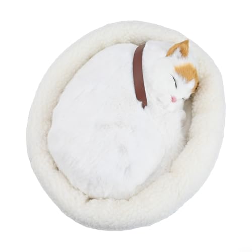 Yuanpgky Realistic Breathing Cat Plush Toy with Simulated Breathing Motion, Soft Stuffed Electronic Pet for Home Decor and Car Accessories in Yellow, White or Gray(Yellow Eared Cats)