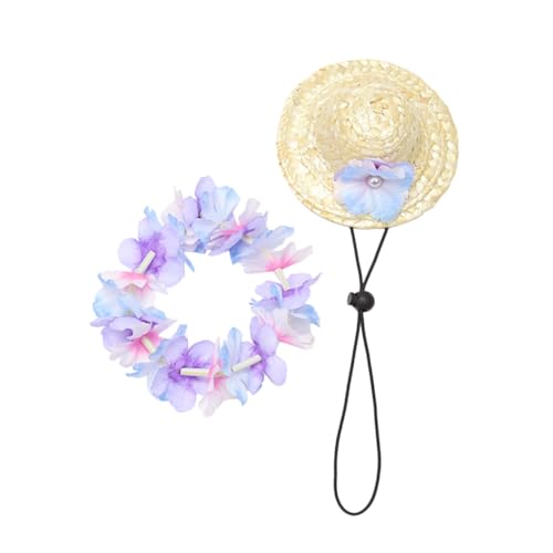 SEWACC 2Pcs Dog Cat Pink Purple Hats Floral Neck Wreath Summer Beach Costume Accessories for Small Dogs and Cats