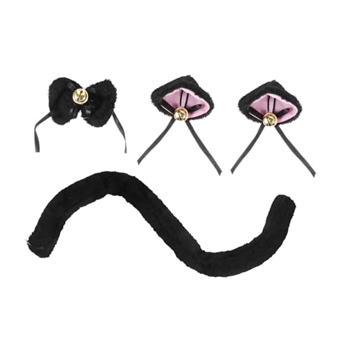 Hohopeti Cat Ears Hair Clip Bow Tie Tail for Cosplay Costume Cats Fancy Dress Party Accessories One Fits for Halloween Christmas Photo Shoot Fun