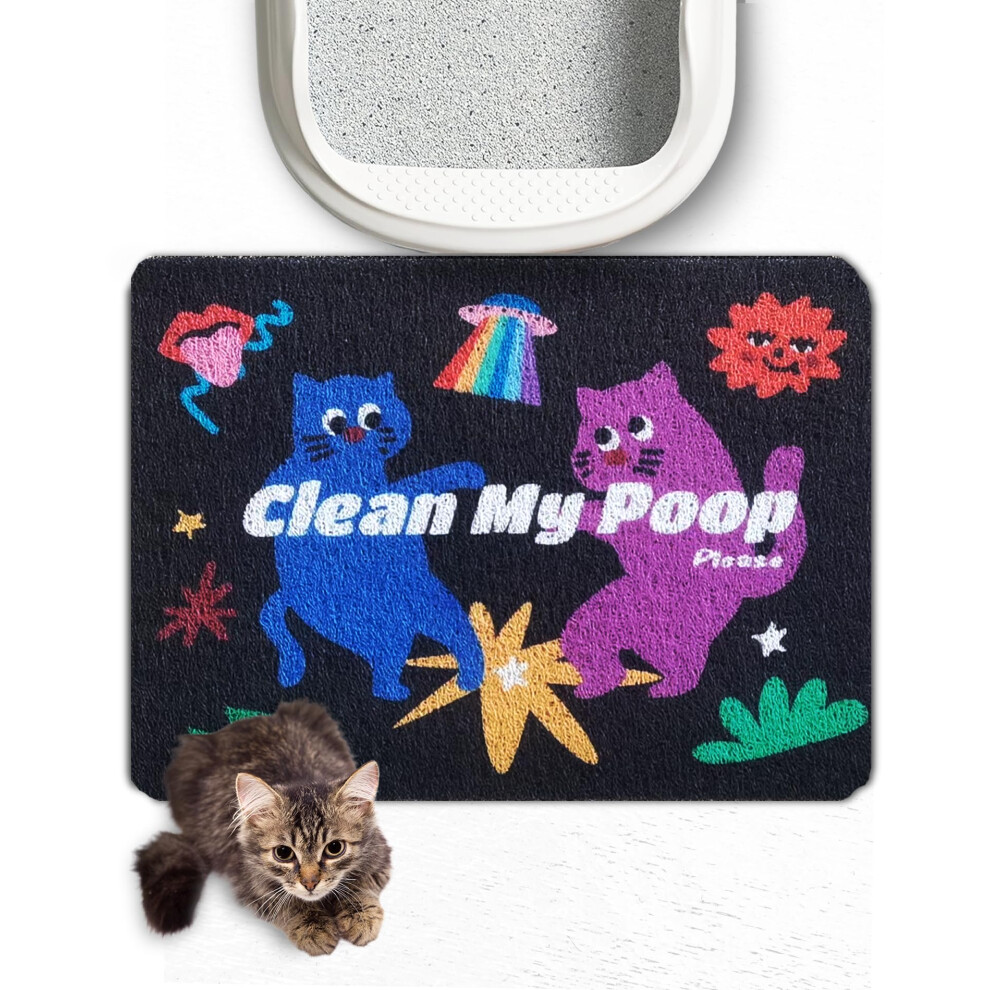 Lukamoo? Cute Cat Litter Mat (60x40cm), Large, for Kitty Litter & Cute Cat Litter Box, Cat Accessories for Indoor Cats (Rainbow (Black) (Rainbow