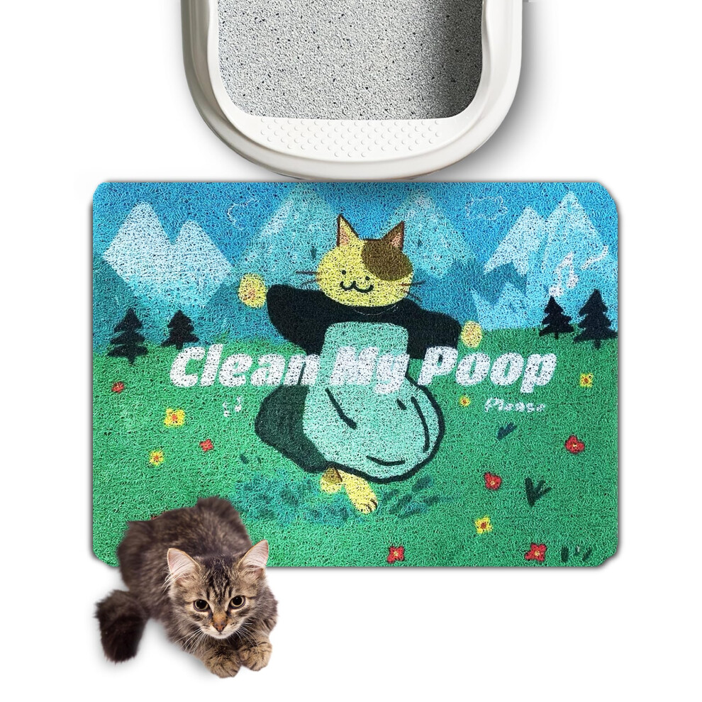 Cat Litter Mat Cute, Cat Litter Box Mat NonSlip Litter Mat with Cat Print Soft Mat cat Accessories for Indoor Cats