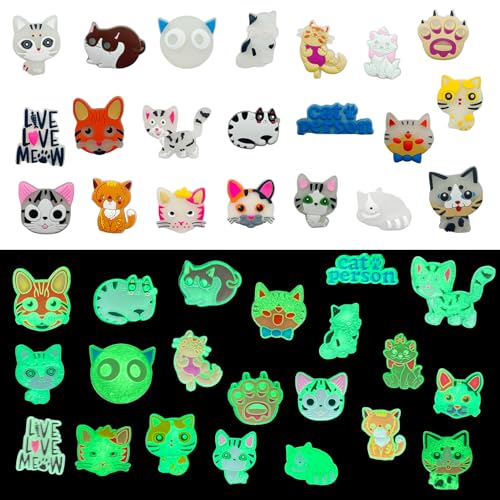 NOEMIN Glow in the Dark Shoe Charms – 21pcs Shoe Charms for Clogs Cats Cheese Cat Charms PVC Fluorescent Luminous Shoe Decorations Pretty for Girls and Boys Shoes Accessories