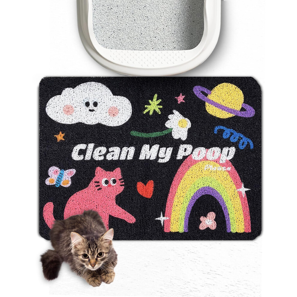 Lukamoo? Cute Cat Litter Mat (60x40cm), Large, for Kitty Litter & Cute Cat Litter Box, Cat Accessories for Indoor Cats (Rainbow (Black) (My Favorite