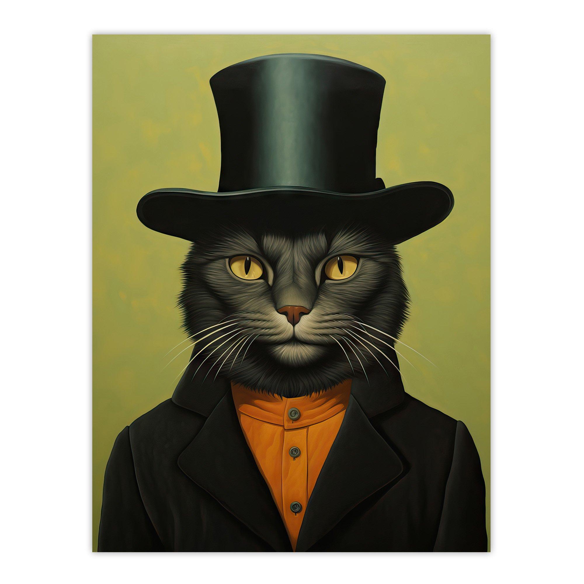 The Top Hat Cat Called Matt Sage Green And Black Portrait Extra Large XL Unframed Wall Art Poster Print