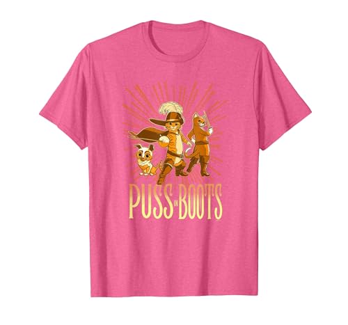 DreamWorks Puss in Boots: The Last Wish Cat Trio Poster T-Shirt, Men, Pink Heather, XX-Large