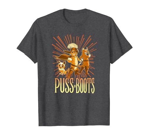 DreamWorks Puss in Boots: The Last Wish Cat Trio Poster T-Shirt, Men, Dark Heather Grey, X-Large