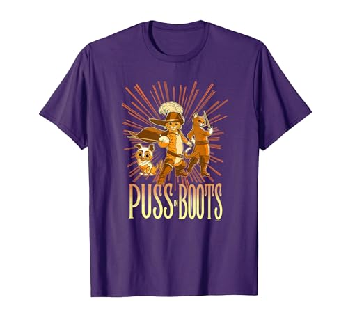 DreamWorks Puss in Boots: The Last Wish Cat Trio Poster T-Shirt, Men, Purple, X-Large