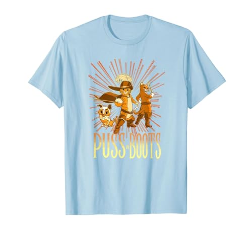 DreamWorks Puss in Boots: The Last Wish Cat Trio Poster T-Shirt, Men, Baby Blue, Small