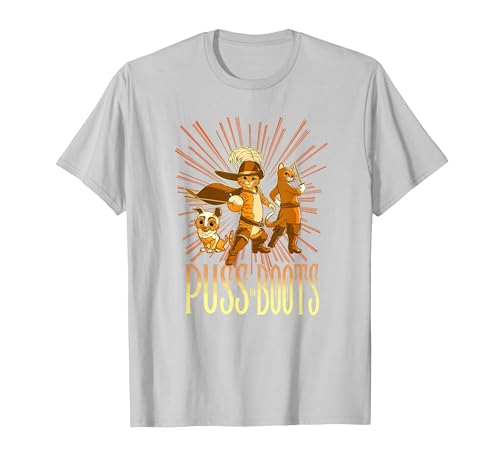 DreamWorks Puss in Boots: The Last Wish Cat Trio Poster T-Shirt, Men, Silver Grey, Medium