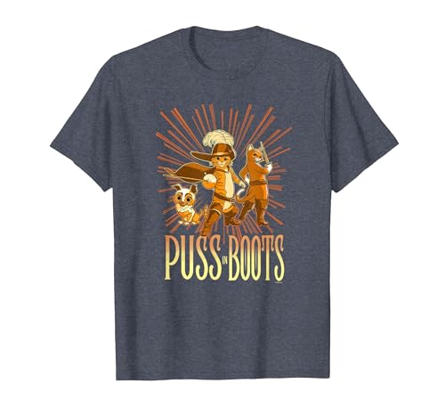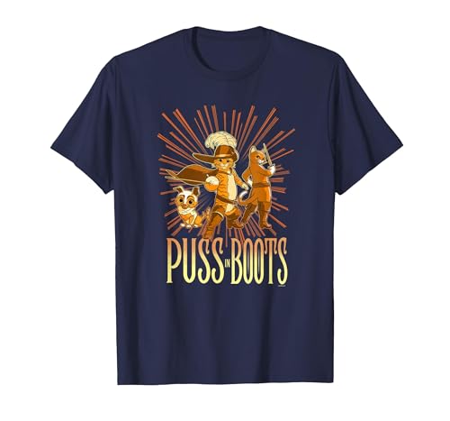 DreamWorks Puss in Boots: The Last Wish Cat Trio Poster T-Shirt, Men, Navy Blue, Small