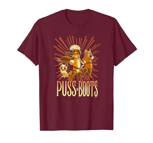 DreamWorks Puss in Boots: The Last Wish Cat Trio Poster T-Shirt, Men, Burgundy, Large