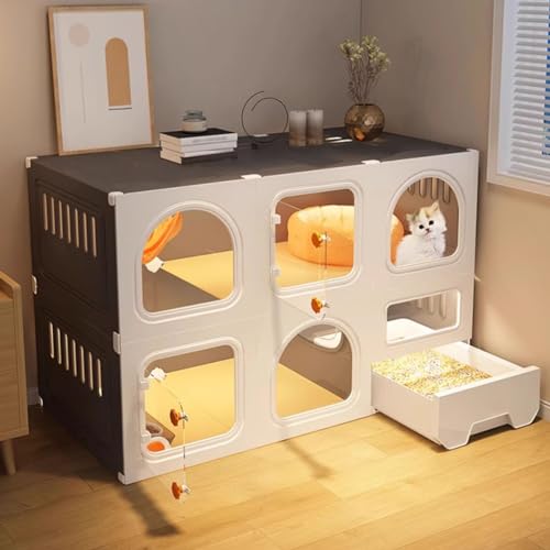 ZDMZR Cat Cage Indoor, Transparent and Visible Cat House with Fully Enclosed Litter Box, Cat Houses for Indoor Cats, Pet Cages for Small Animals, Cat Houses & Condos, Bunny Cages, Rabbit House (Size
